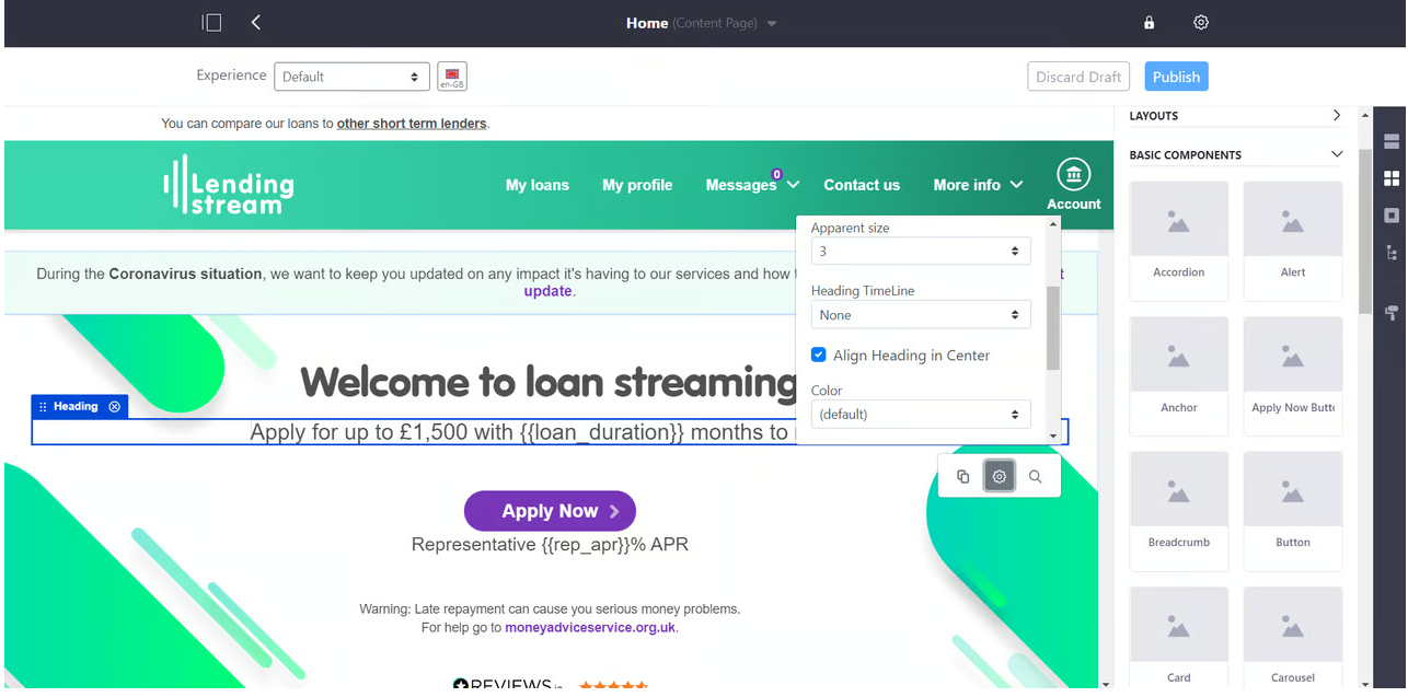 Sử dụng cả tính năng sẵn có và tùy chỉnh, giải pháp Liferay cho phép các nhà tiếp thị và người tạo nội dung đăng nhập và thực hiện các thay đổi nhanh chóng. Được lưu trữ trên một máy chủ khác, trang web tải các thay đổi nội dung thông qua các API headless của Liferay. Các API headless cho phép nhà phát triển tùy chỉnh một cách dễ dàng mà không làm ảnh hưởng đến cấu trúc của Liferay và cho phép nhà tiếp thị và người tạo nội dung thực hiện thay đổi nội dung thông qua giao diện chỉnh sửa thân thiện với người dùng.