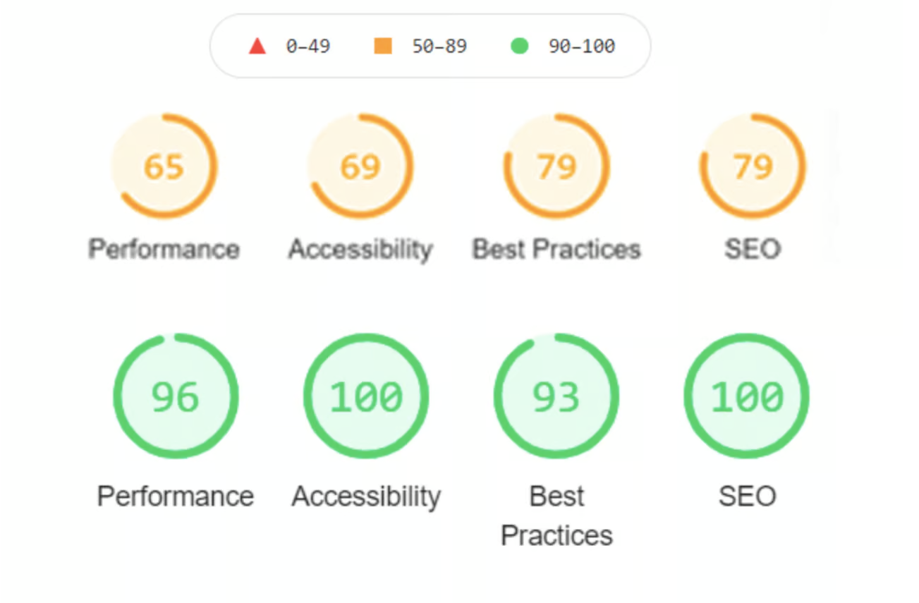 - Tăng 31 điểm trên báo cáo Lighthouse. Trên công cụ đánh giá hiệu suất của trang web Lighthouse, điểm số của Lending Stream đã tăng từ cực thấp chỉ 65 lên tới 100 nhờ hiệu suất cải thiện, tuân thủ các quy tắc tốt nhất, tiêu chuẩn truy cập, và SEO.