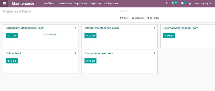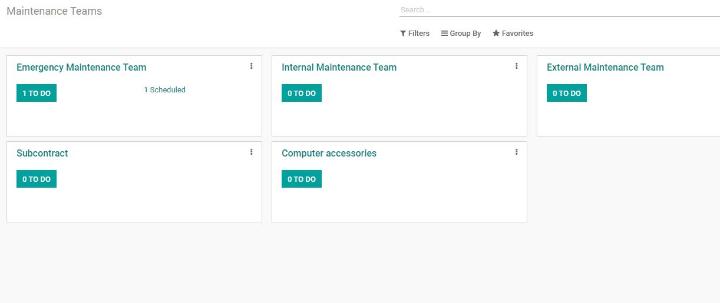 Một đội bảo trì sẽ giúp công ty quản lý tất cả các hoạt động liên quan đến bảo trì một cách có hệ thống. Nhóm sẽ đảm bảo hỗ trợ để xóa tất cả các yêu cầu bảo trì trên cơ sở tình trạng khẩn cấp hoặc mức độ ưu tiên của yêu cầu. Nó sẽ giúp liệt kê và lên lịch các nhiệm vụ bảo trì khác nhau và quản lý các nhiệm vụ mà không bỏ sót các nhiệm vụ. Vì tất cả các công việc Cần làm sẽ được liệt kê trong chế độ xem Nhóm bảo trì Odoo, các thành viên trong nhóm chắc chắn đã thông báo tất cả các yêu cầu bảo trì và hoàn thành công việc sửa chữa.