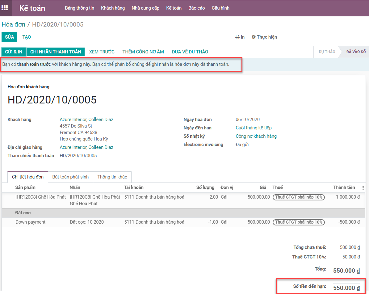* Bất cứ khi nào một khoản thanh toán được đính kèm với một hóa đơn, số tiền đến hạn trên hóa đơn sẽ được giảm bớt. Bạn có thể kết nối nhiều giao dịch với cùng một hóa đơn.