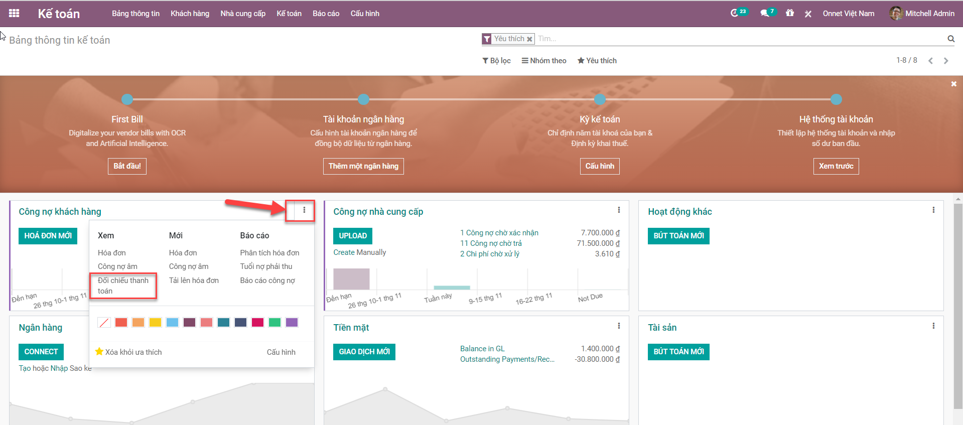 Trong trang chủ Kế toán, chúng tôi có hóa đơn của khách hàng, hóa đơn của nhà cung cấp, v.v. ở đó tùy chọn đối sánh thanh toán có sẵn.