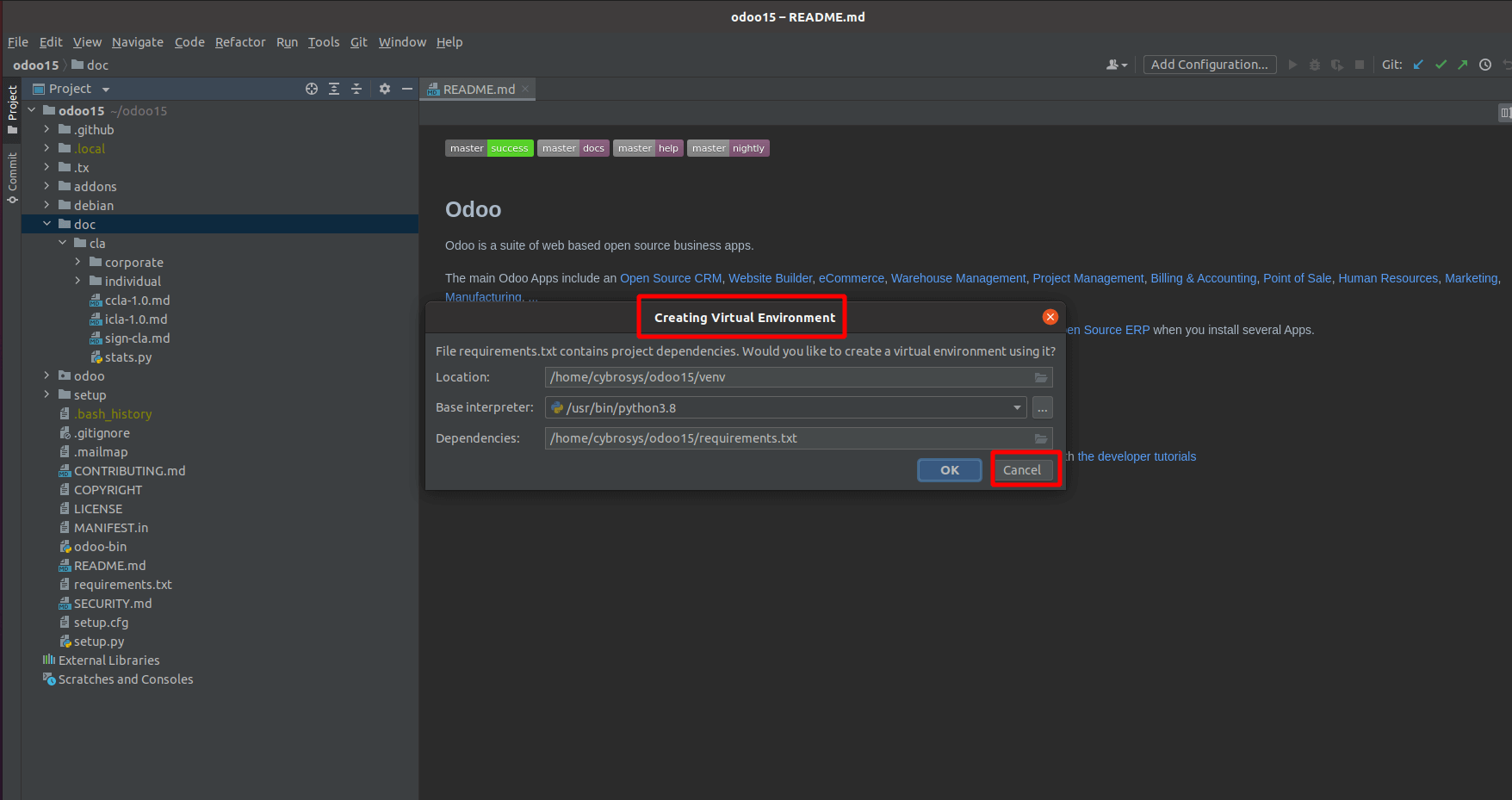 Trước khi cấu hình Pycharm, ban đầu chúng ta cần cài đặt một số thư viện và gói cần thiết để chạy Odoo. Hãy xem xét từng bước một.