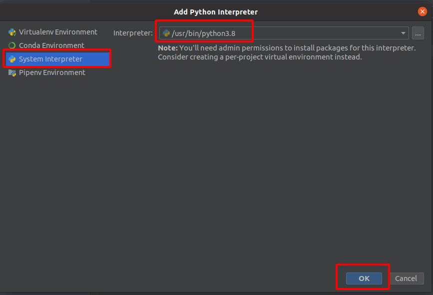 Sau khi tải dự án, một hộp thoại có thể xuất hiện như trong ảnh chụp màn hình bên dưới. Nếu bạn muốn sử dụng môi trường ảo, bạn có thể chọn OK, nhưng ở đây chúng tôi không sử dụng môi trường ảo. Vì vậy, hãy hủy bỏ nó.