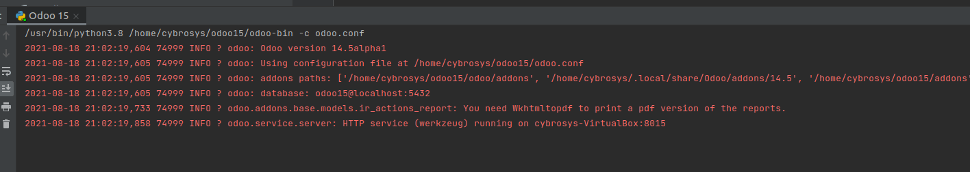 Nếu bạn yêu cầu in các báo cáo được tạo trong Odoo, bạn cần cài đặt Wkhtmltopdf có thể được thực hiện bằng cách sử dụng mã sau: