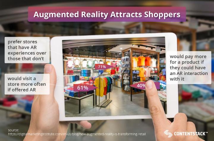 Công nghệ thực tế ảo (AR) cho phép mọi người thêm các yếu tố kỹ thuật số vào môi trường thực tế của họ bằng cách sử dụng máy ảnh trên thiết bị thông minh. Trong những năm gần đây, AR đã lan rộng ra ngoài ngành công nghiệp game, với việc các nhà bán lẻ khám phá ra những cách mới để sử dụng nó để tạo ra những trải nghiệm mua sắm thực sự độc đáo.