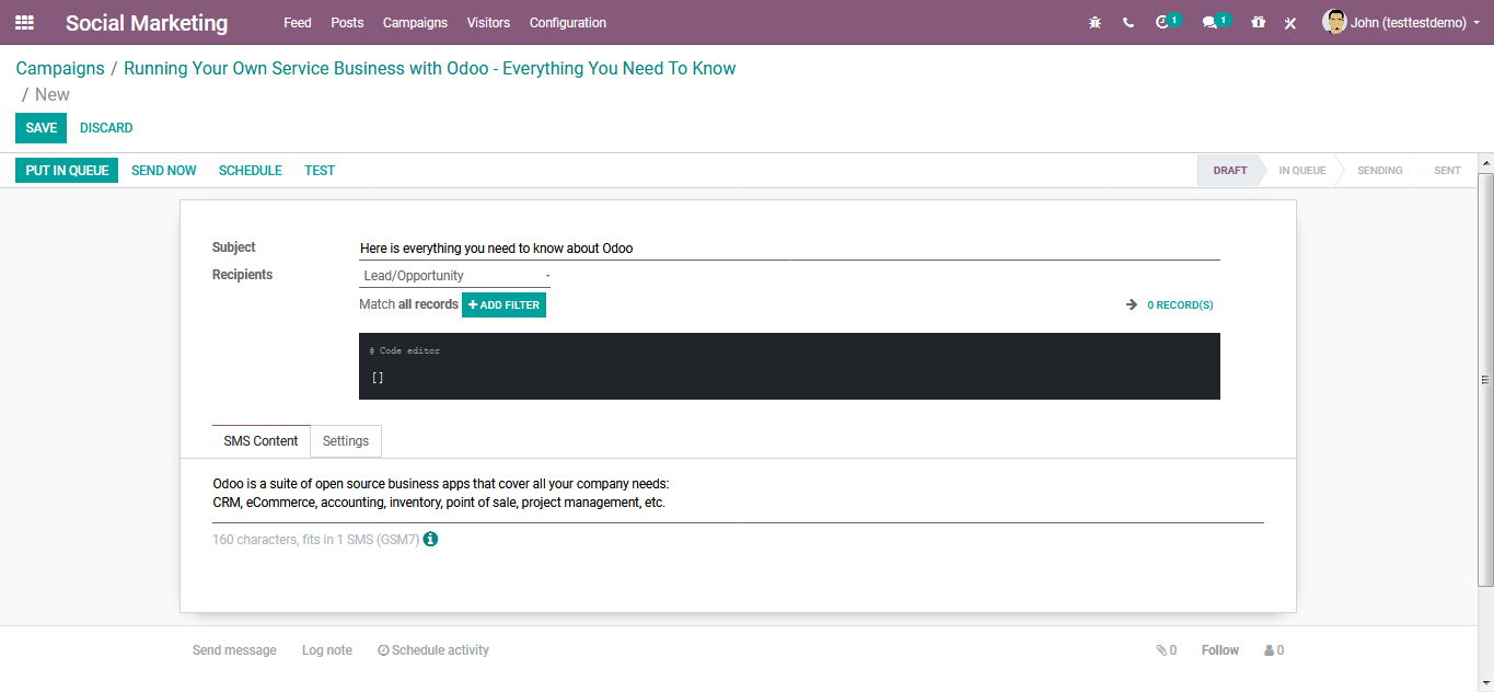 Nếu có số điện thoại của khách hàng trong hồ sơ, bạn có thể liên hệ với họ để cập nhật khẩn cấp thông qua tin nhắn văn bản sử dụng Odoo SMS. Odoo VOIP cung cấp giao tiếp hai chiều, nghĩa là khách hàng có thể viết lại bất kỳ tin nhắn nào bạn gửi và bạn có thể trả lời trực tiếp.