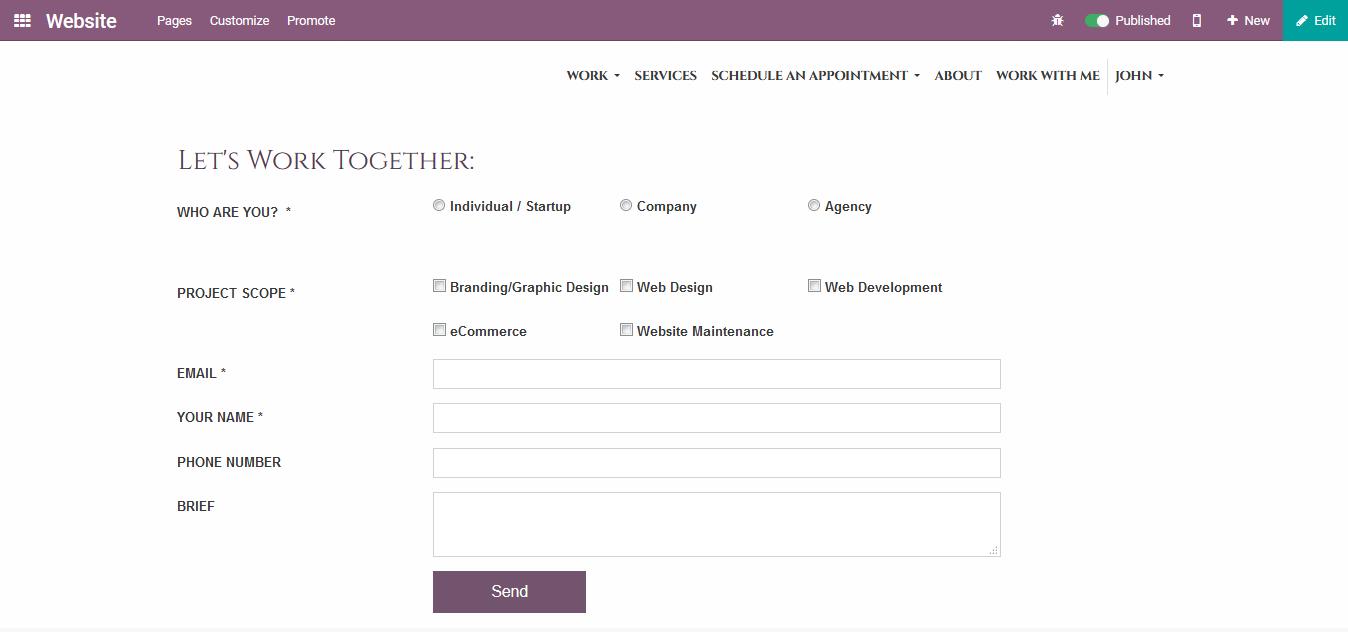 Với những người đã sẵn sàng truy cập thẳng vào trang “Làm việc với chúng tôi” trên website của bạn, bạn sẽ muốn đây là bước đầu tiên trong quy trình giới thiệu khách hàng liền mạch. Bằng cách sử dụng trình tạo biểu mẫu trang web Website Form Builder, bạn có thể tạo biểu mẫu liên hệ chi tiết hỏi khách hàng tiềm năng những câu hỏi quan trọng để cung cấp cho bạn thông tin cần thiết nhằm chuyển họ sang bước tiếp theo trong quy trình bán hàng mà không khiến họ bị choáng ngợp. Theo thời gian, khi đã có một khách hàng làm quen và biết cách làm, bạn có thể cải thiện nó tốt hơn nữa bằng cách tự động hóa quy trình!