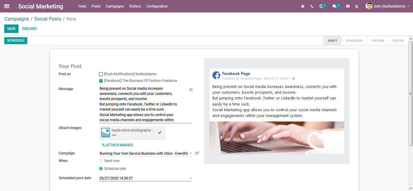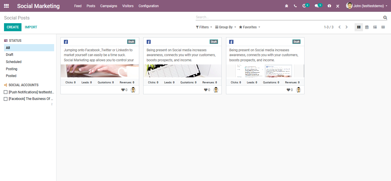 Ứng dụng Social Marketing cho phép bạn kiểm soát các kênh truyền thông xã hội và tương tác trong hệ thống quản lý. Với ứng dụng này, bạn có thể dễ dàng tự động chia sẻ nội dung của mình – lên lịch cho các bài đăng trên mạng xã hội, bài đăng trên blog, các lead magnet thu hút và chuyển đổi khách hàng, thậm chí cho mọi người biết về tính khả dụng của khách hàng của bạn. Hoặc bạn có thể nhận được danh sách chính xác khách truy cập trang web của mình và tiếp cận họ qua E-mail, SMS hoặc Live Chat. Với điều này, bạn có thể theo dõi hành trình của một liên kết từ một bài đăng và nhận thông tin về doanh thu mà liên kết tạo ra, cũng như bao nhiêu khách hàng tiềm năng mới.