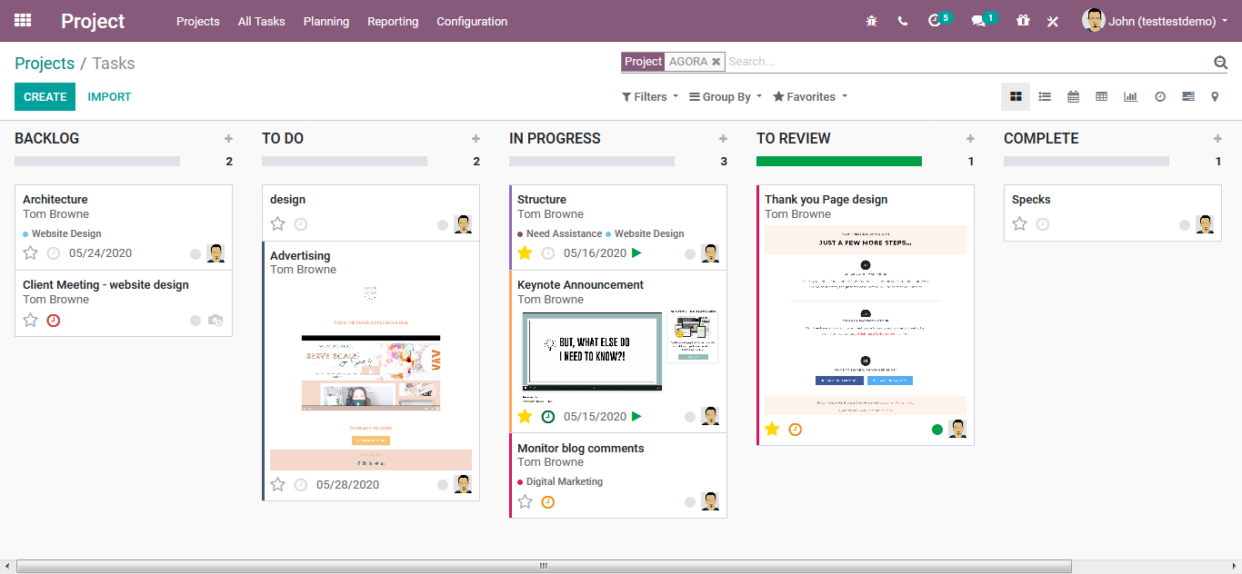Khi quản lý công việc kinh doanh của riêng mình, bạn không có quyền được yêu cầu làm gì và khi nào. Bạn đang kiểm soát dòng công việc hàng ngày của mình mà không cần bất kỳ ai thúc đẩy bạn hoàn thành thời hạn, việc quản lý công việc trở nên quan trọng hơn tất cả. Ứng dụng Project của Odoo có toàn quyền kiểm soát các dự án của bạn, trong khi các ứng dụng quản lý Tasks và Notes management có thể nhắc bạn về một số nội dung quan trọng cần chú ý. Nó duyệt qua các thời hạn, dự án, điều khoản hợp đồng và đầu vào liên quan khác của bạn rồi tạo ra các nhiệm vụ cần bạn chú ý. Nó giống như một trợ lý riêng không bao giờ ngủ, thường xuyên cảnh giác theo dõi công việc kinh doanh của bạn và thông báo cho bạn những việc cần hoàn thành.