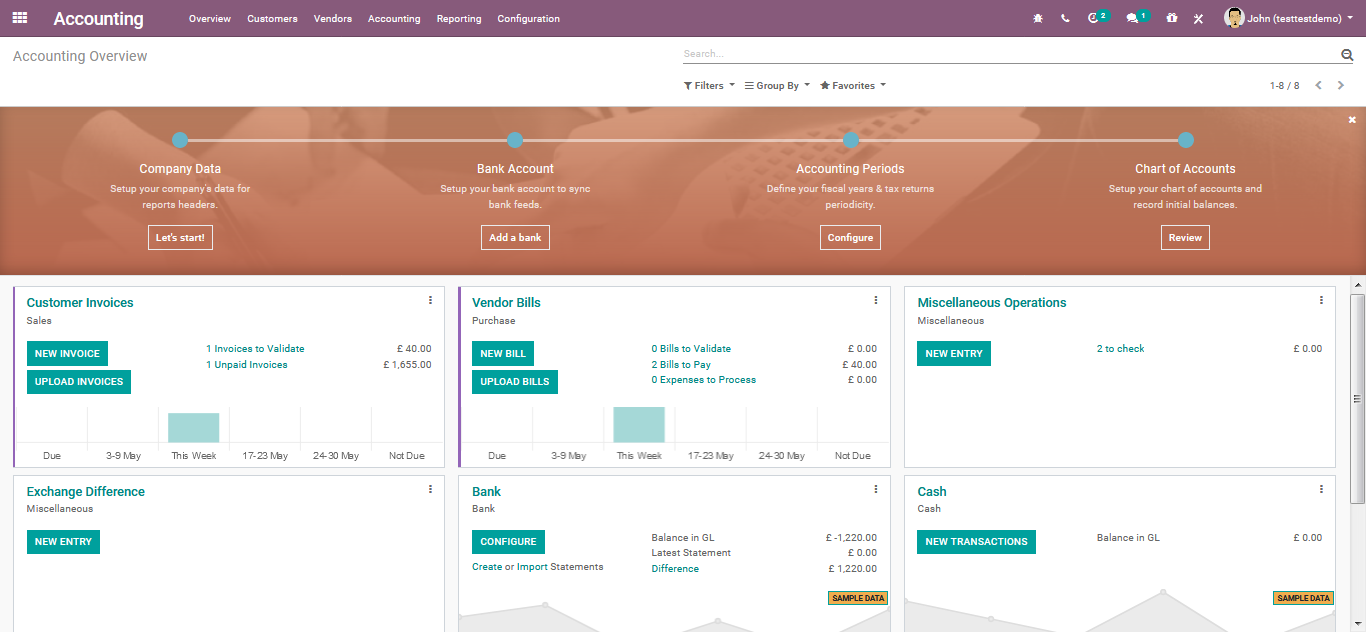 Và giờ, hãy đến với Odoo Accounting. Trừ khi bạn điều hành một công ty kế toán, nếu không, bạn sẽ không phải là một kế toán viên. Nhưng để mắt đến sổ sách cẩn thận là điều bạn luôn phải quan tâm. Ứng dụng The Accounting có tất cả công cụ tiết kiệm thời gian mà bạn cần để phát triển doanh nghiệp của mình. Nó giống một nhân viên kế toán cá nhân của bạn. Trong giao diện người dùng, bạn có thể: