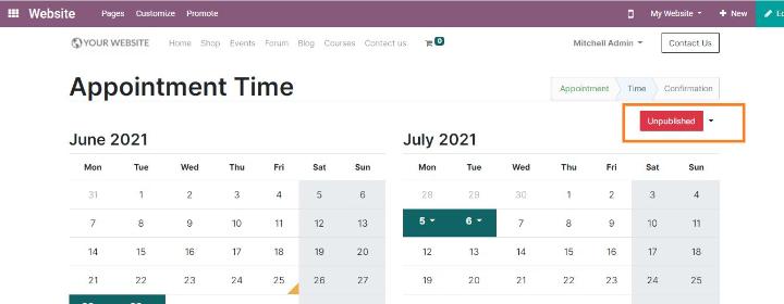 Ở phía bên phải của lịch, bạn có thể thấy trạng thái cuộc hẹn của mình là 'chưa được xuất bản' bằng màu đỏ. Để công bố cuộc hẹn, bạn có thể nhấp vào nó và nó sẽ chuyển sang màu xanh lá cây.