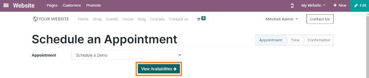 Bạn cũng được phép sử dụng mô-đun lịch để lên lịch các cuộc hẹn mới. Nhấp vào cuộc hẹn trực tuyến từ thanh menu sẽ đưa bạn đến trang tạo cuộc hẹn.
