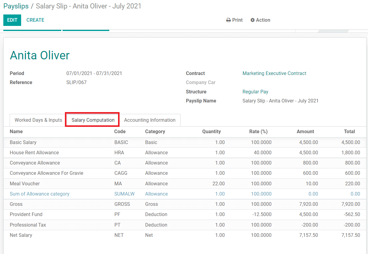 Đây là cách Odoo giúp tính toán mức lương của từng nhân viên dựa trên cấu trúc tiền lương được chọn trong hợp đồng nhân viên, quản lý phiếu lương của nhân viên và tạo hồ sơ về mỗi khoản thanh toán.