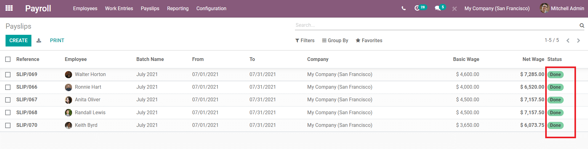Sau khi tạo phiếu lương, bạn có thể thấy trạng thái của phiếu lương đã thay đổi như hình dưới đây.