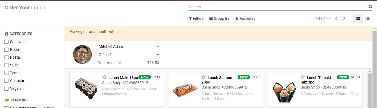 Với module Bữa trưa trên Odoo, giờ đây doanh nghiệp có thể định cấu hình các nhà cung cấp, địa điểm giao hàng và sản phẩm khác nhau một cách đơn giản.