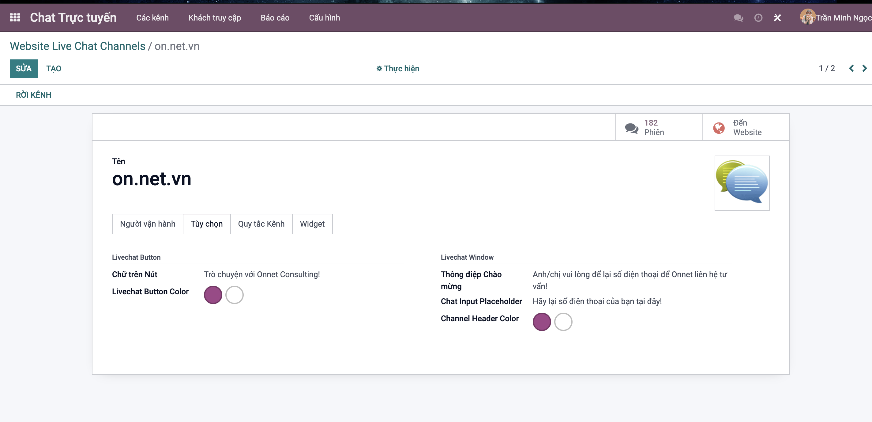 Tính năng cấu hình trong bảng điều khiển Live Chat