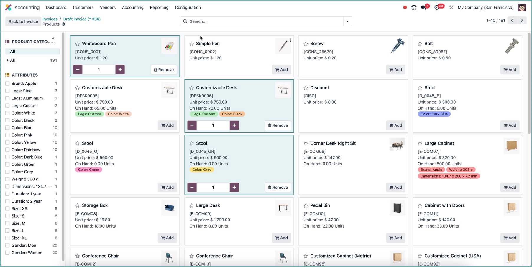 Trước đây, bạn đã có thể thêm sản phẩm vào các đơn mua hàng và bán hàng, nhưng bây giờ bạn cũng có thể thêm sản phẩm qua danh mục sản phẩm trong hóa đơn nhà cung cấp và hóa đơn khách hàng.