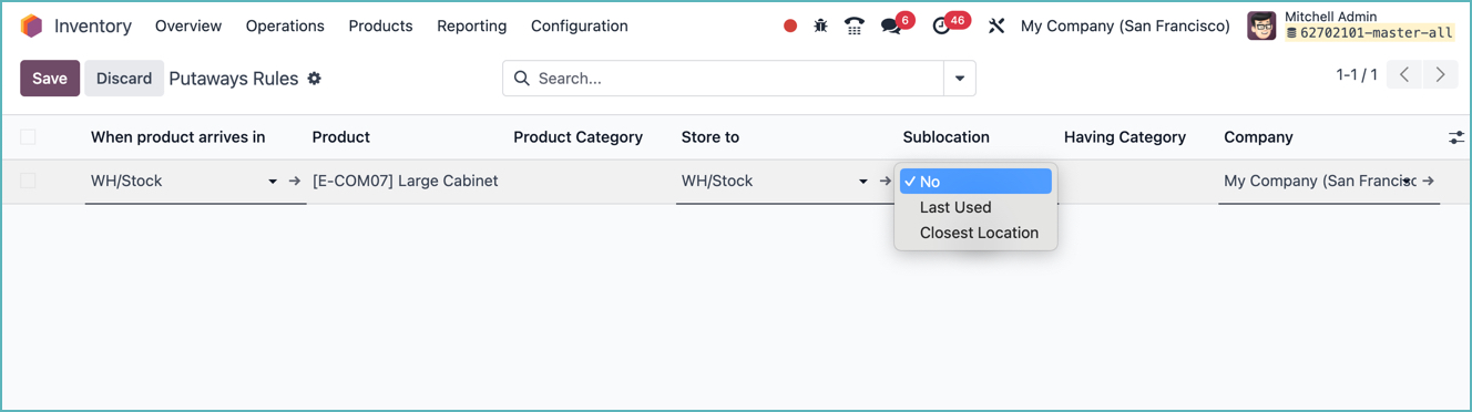 Odoo đã áp dụng các chiến lược sắp xếp mới để cải thiện quản lý kho. Cập nhật này bao gồm một cột mới "Vị trí phụ" cho phép người dùng chỉ định liệu và cách mà một vị trí phụ nên được chọn.