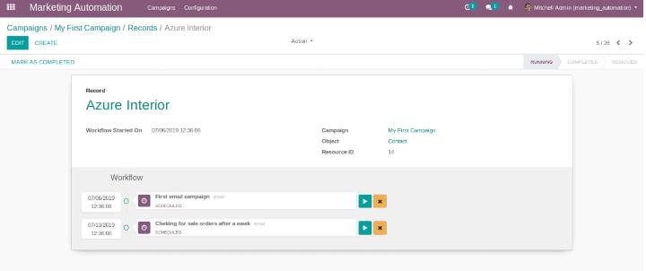 Chúng ta có thể thấy rằng các hoạt động được lên kế hoạch cho người tham gia này. Nếu muốn chạy hoạt động ngay lập tức cho người tham gia này, nhấp vào nút phát của hoạt động được yêu cầu.