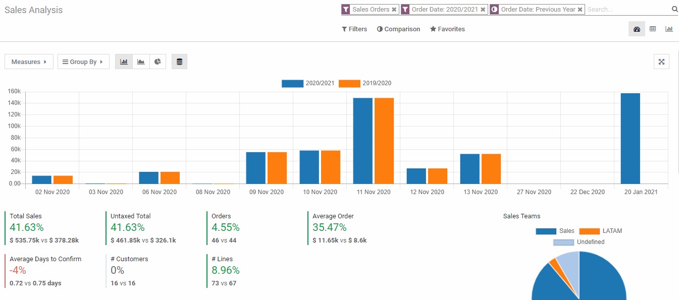 Ở phân hệ bán hàng, Odoo ERP cung cấp cho doanh nghiệp một hệ thống quản lý quy trình kinh doanh toàn diện bao gồm: quản lý đơn đặt hàng, lập phiếu xuất kho, báo giá, báo cáo hoạt động bán hàng...