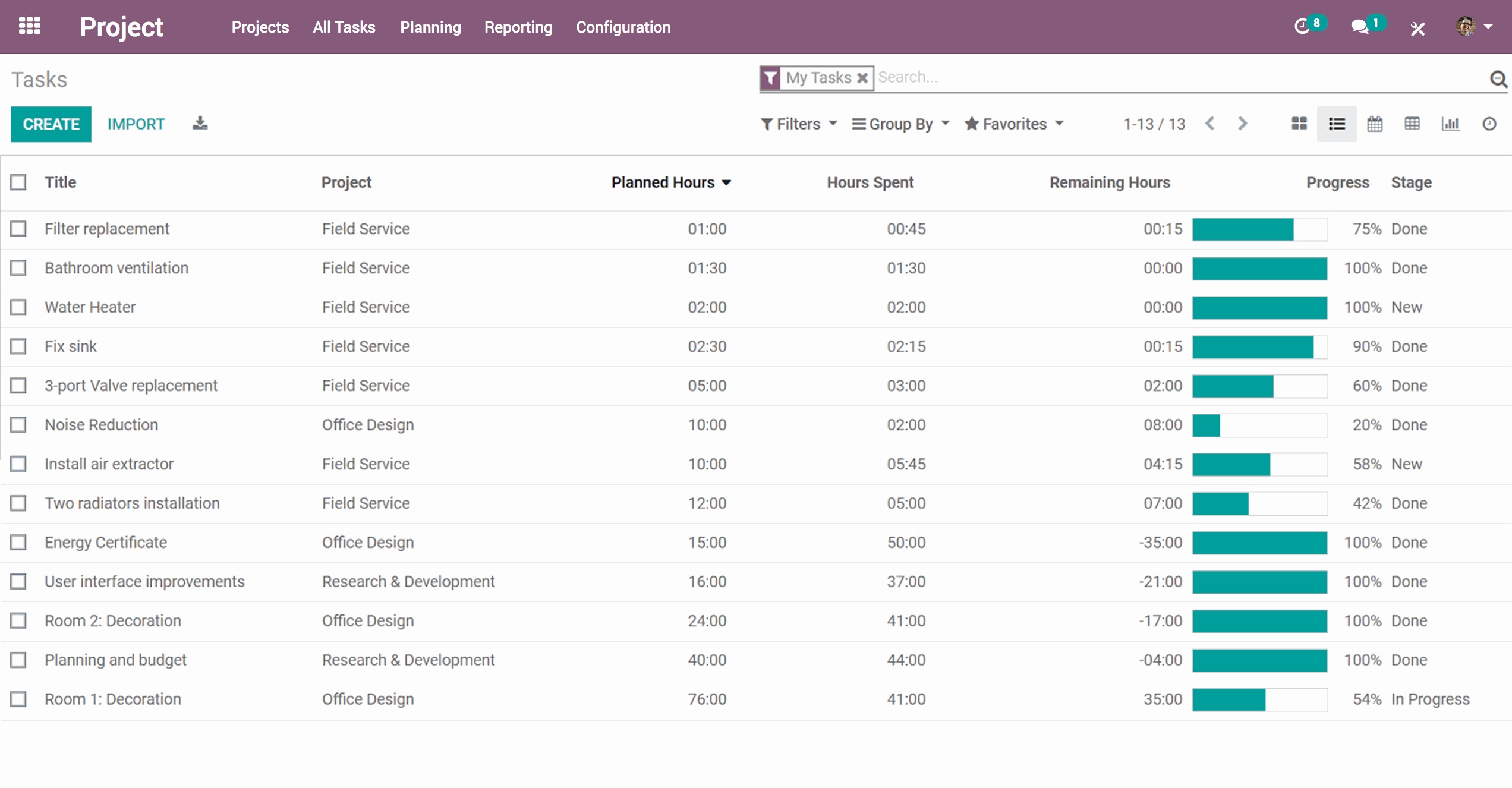 Đây là module quan trọng trong Odoo ERP. Nó giúp doanh nghiệp tạo lập, theo dõi, quản lý dự án doanh nghiệp hiệu quả từ khâu tạo dự án, phân công công việc, theo dõi tiến độ, báo cáo kết quả hoạt động dự án.
