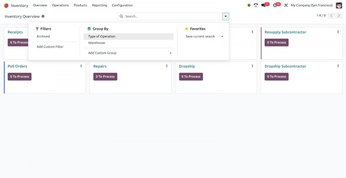 Hệ thống quản lý hàng tồn kho trong Odoo ERP cho phép doanh nghiệp phân loại các mặt hàng/chi tiết giúp dễ dàng đặt hàng đúng số lượng. Một số mặt cần được đặt hàng khi có một nhu cầu cụ thể với số lượng chính xác để đáp ứng nhu cầu. Một số mặt hàng khác được đặt hàng khi giá thị trường thấp hơn và dễ dàng mua.