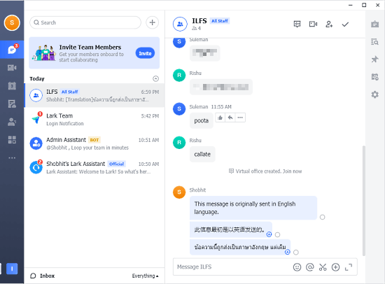 Lark có giao diện rõ ràng và đơn giản, dễ sử dụng và điều hướng. Nó có thiết kế tối giản và rất dễ bắt đầu. Với thiết kế gọn gàng và tối giản, Lark giúp bạn dễ dàng sử dụng và điều hướng. Giao diện của nó được tổ chức thành ba phần chính: giao diện nhắn tin, thanh bên và thanh điều hướng trên cùng. Giao diện nhắn tin đơn giản và trực quan với cửa sổ trò chuyện hiển thị tất cả các cuộc hội thoại ở một nơi. Thanh bên hiển thị danh sách các cuộc hội thoại và liên hệ, có thể dễ dàng lọc và tìm kiếm. Thanh điều hướng trên cùng cung cấp quyền truy cập nhanh vào các tính năng quan trọng như cuộc gọi video, lịch và tác vụ.