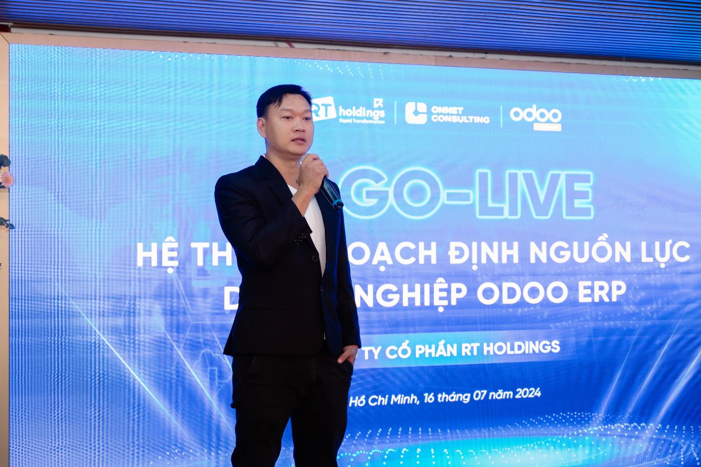 Trong buổi lễ Go-live, anh Võ Anh Minh - Head of Functional Consultant của Onnet Consulting đồng thời là người xây dựng kiến trúc giải pháp của toàn bộ hệ thống ERP cho RT Holdings chia sẻ: