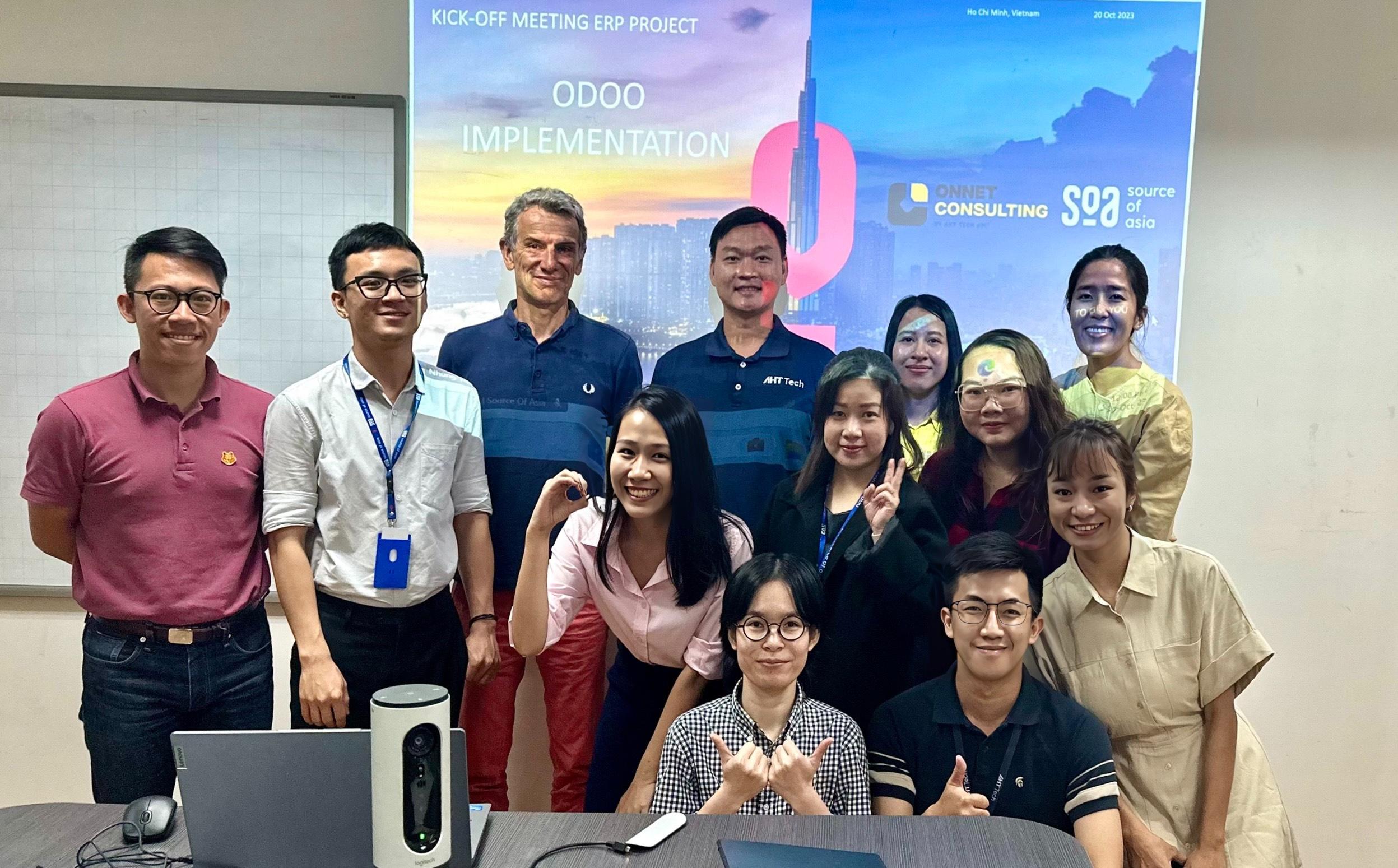Dự án “Triển khai giải pháp quản trị doanh nghiệp với Odoo ERP tại công ty SoA Trading Việt Nam (Source Of Asia) đã chính thức được khởi động vào ngày 20.10.2023. Buổi lễ kick-off được tổ chức ngay tại văn phòng SOA với sự tham dự của đội ngũ nòng cốt hai bên.