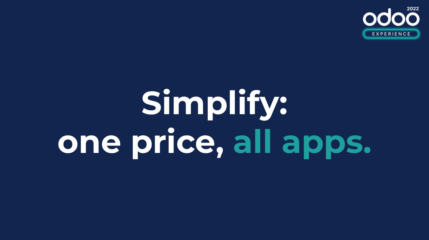 Trong sự kiện Odoo Experience 2022, Odoo đã thông báo thay đổi lớn về chính sách giá license. Điều này sẽ giúp người dùng Odoo tiết kiệm được một khoản chi phí đáng kể nhưng nhận được nhiều giá trị hơn.
