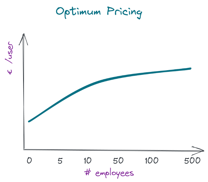 Một công ty nhỏ có thể đủ khả năng quản lý hầu hết hoạt động kinh doanh của mình với ít tổ chức dữ liệu hơn và ít ứng dụng hơn. Ngược lại, một công ty lớn không thể duy trì sự phát triển và tồn tại nếu không có sự tối ưu hóa kỹ thuật số và tích hợp hoàn hảo các ứng dụng. Nói cách khác: một chiến lược giá tối ưu sẽ là tăng giá theo số lượng người dùng.
