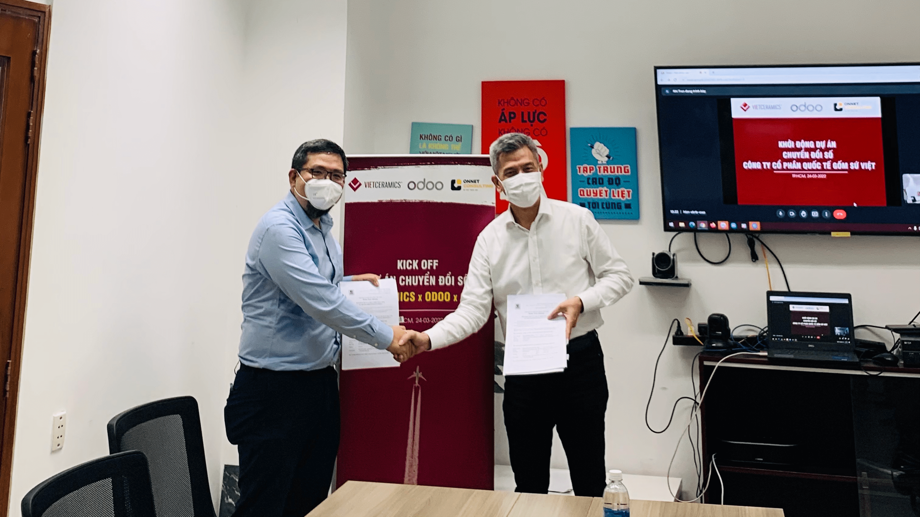 Ngày 25/3/2022 tại trụ sở của công ty, đại diện Công Ty Cổ phần Quốc Tế Gốm Sứ Việt (Vietceramics) và đội dự án Onnet Consulting đã cùng tham gia buổi lễ "Khởi động dự án chuyển đổi số toàn diện trên nền tảng Odoo".