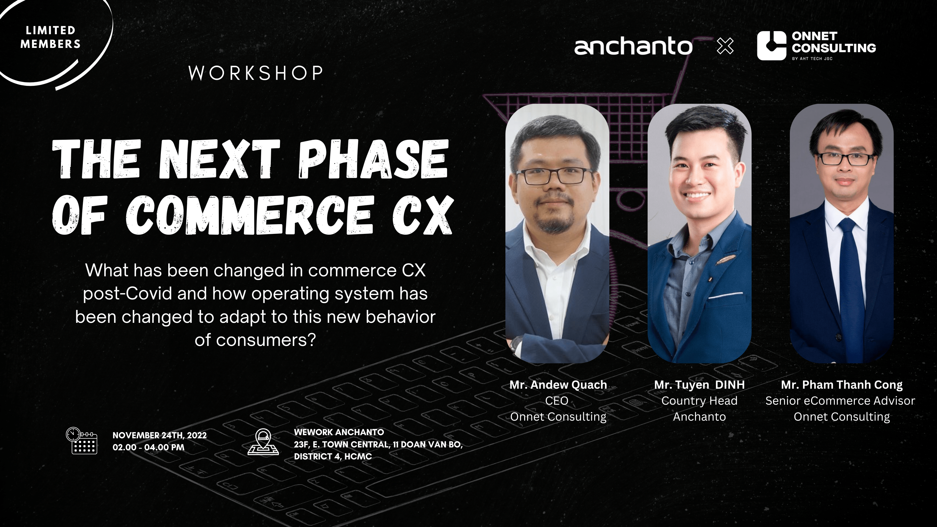 Ngày 24 tháng 11 năm 2022, hybrid workshop "The next phase of Commerce CX" do Onnet Consulting và Anchanto phối hợp tổ chức đã diễn ra thành công tại WeWork E. Town Central (TP. Hồ Chí Minh).